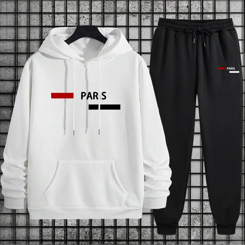 ✔ 4 colores: sudadera con capucha negra/blanca/gris/azul marino + joggers negros