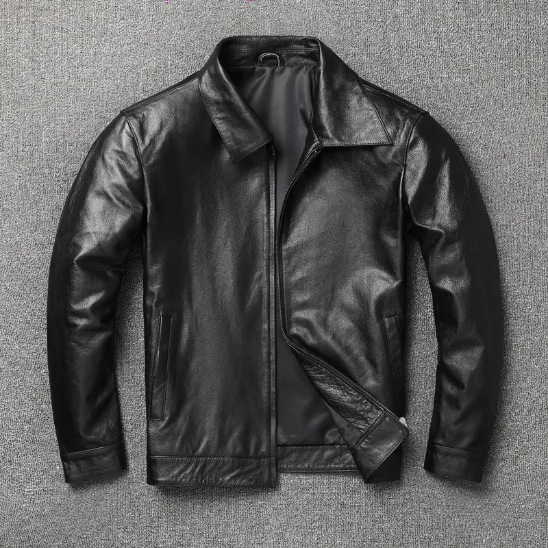 AYUNSUE Chaqueta De cuero genuino De otoño para hombre, chaquetas ajustadas De Cuero De vaca auténtico, abrigo corto De Cuero, abrigos informales, Chaqueta De Cuero SGG977